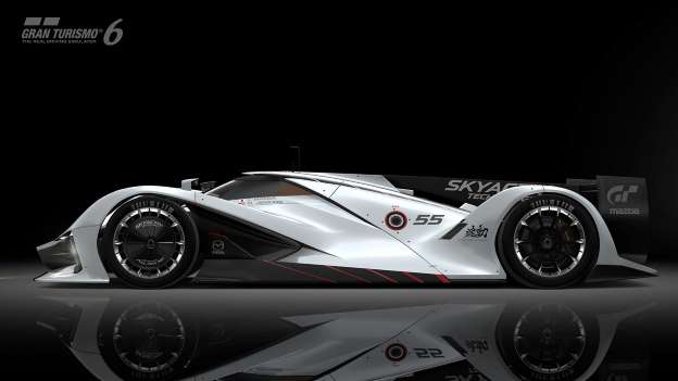 Mazda的設計團隊便以車廠中的經典傳奇賽車787B為靈感來源,融入Mazda的Kodo魂動設計語言,設計出LM55 Vision Gran Turismo這款作品作為回應。猶如現行LM P1原型賽車的線條輪廓,配合著LM55車名中的「LM」明示,讓人輕易地聯想到那必須連續奔馳24小時的Le Mans大賽,也與1991年787B賽車為Mazda贏得車廠歷史中唯一一次Le Mans 24小時勝利搭起連結。